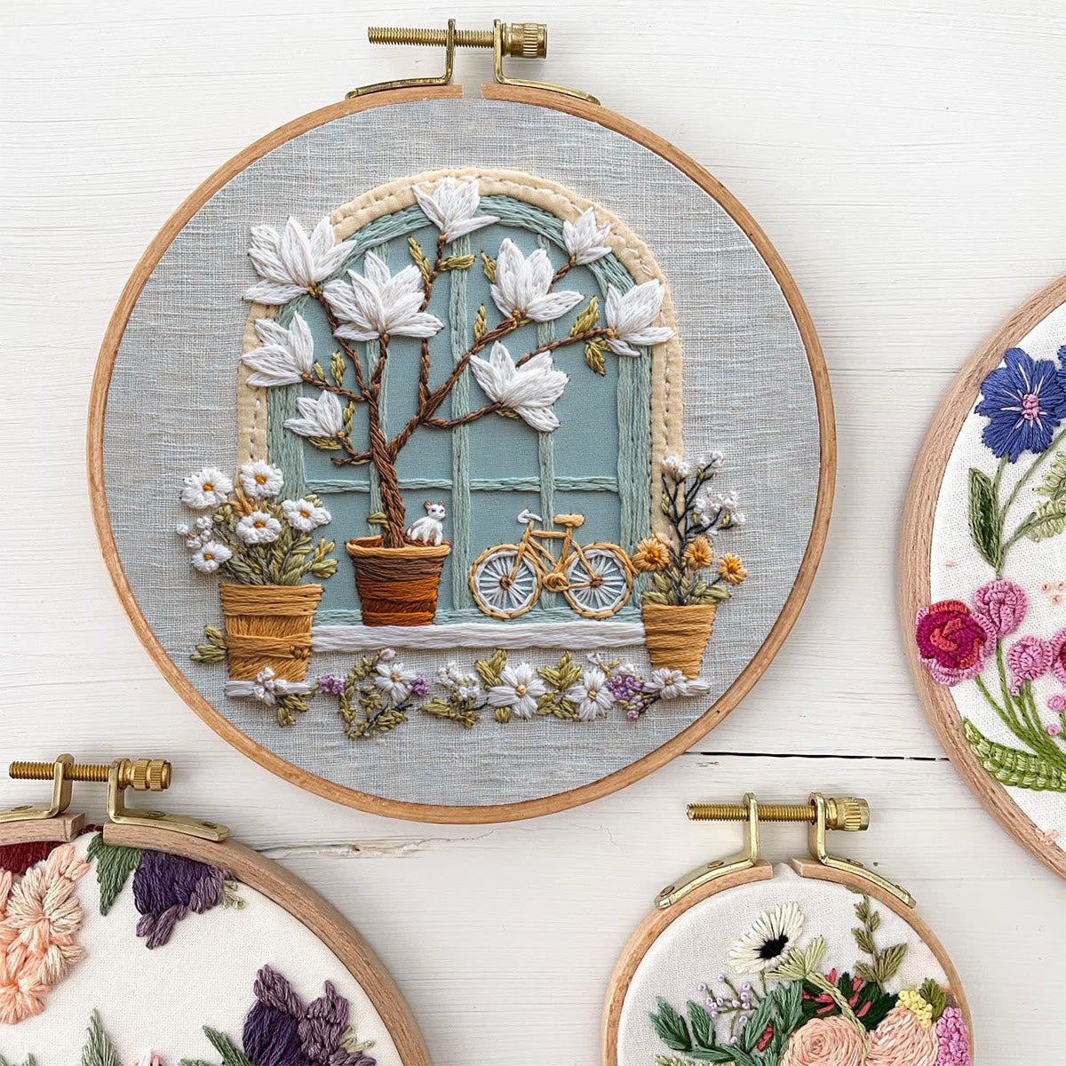 Rubbyoo Embroidery Kit - Floral Window | Diy Needle Craft Gifts