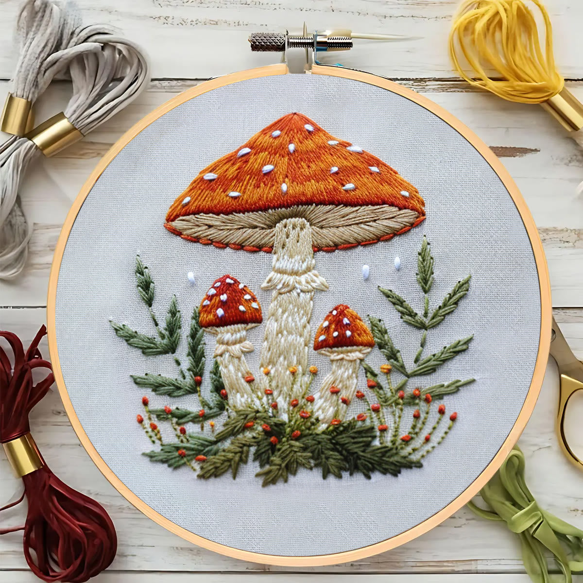 Rubbyoo Embroidery Kit- Mushrooms Easy Embroidery Kit For Beginners | Autumn Crafts
