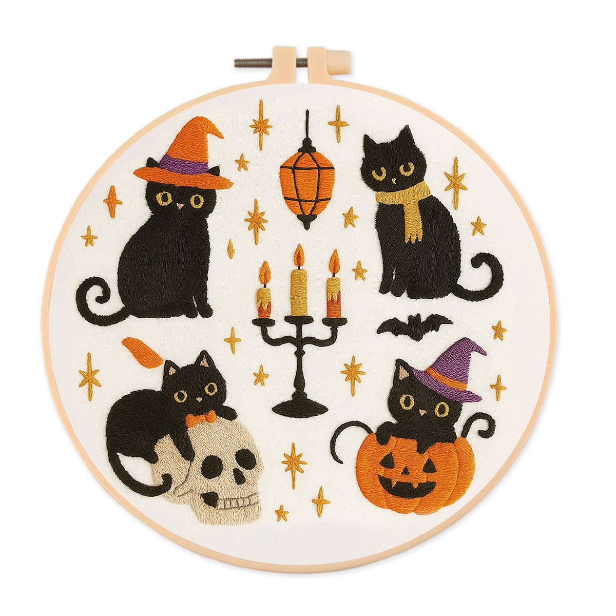 Rubbyoo Embroidery Kit - Halloween Black Cats | Halloween Needlework Collection