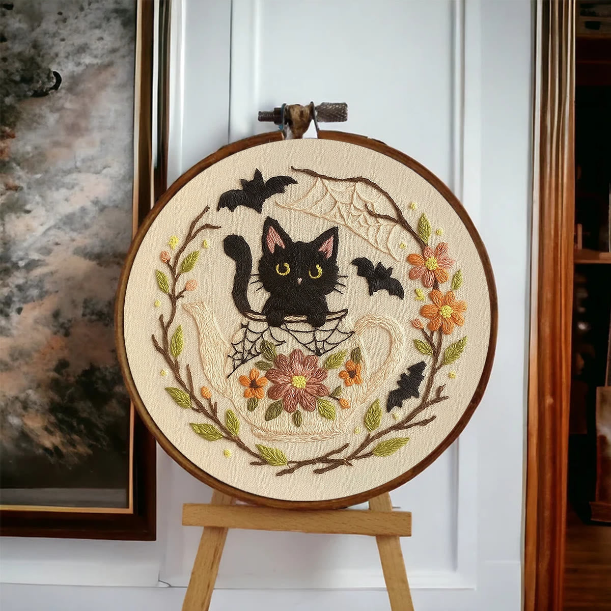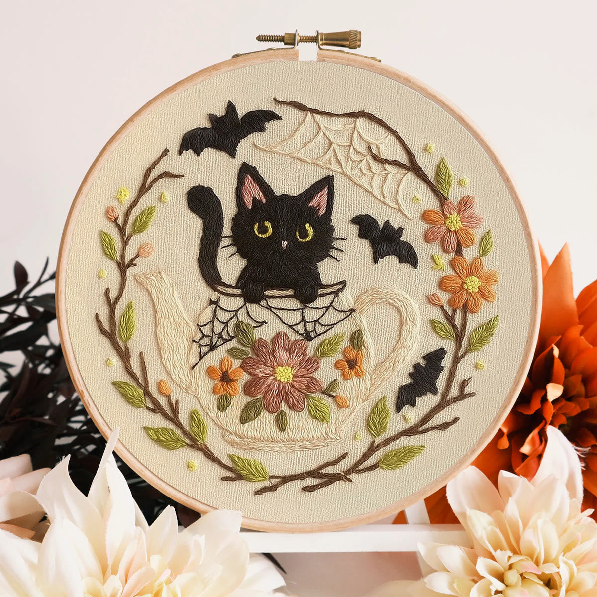 Rubbyoo Embroidery Kit - Halloween Cat Teapot | Perfect For Holiday Gifts