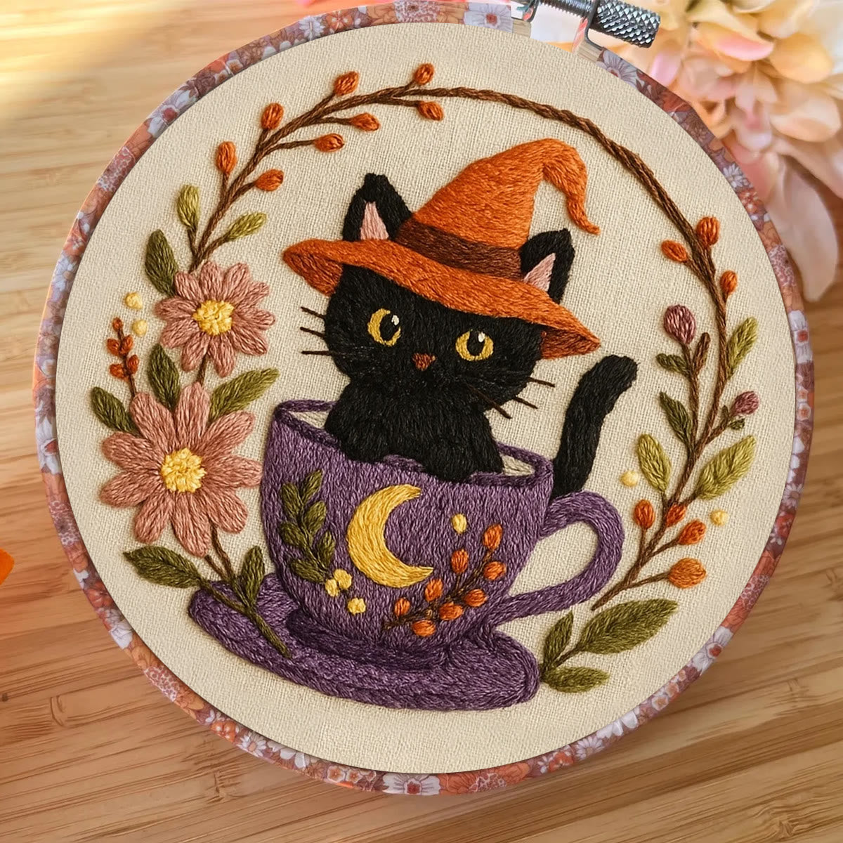 Rubbyoo Embroidery Kit - Halloween Kitten Cup | Unique Halloween Decoration