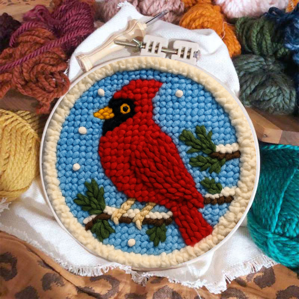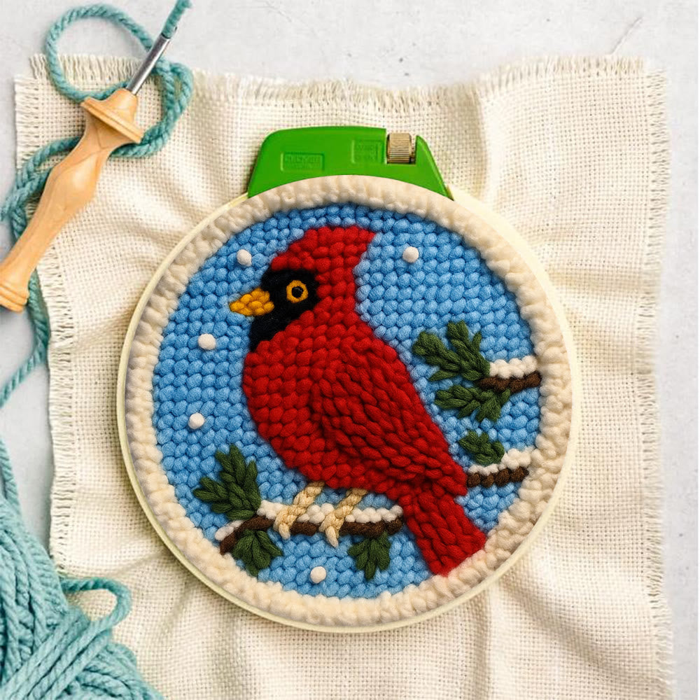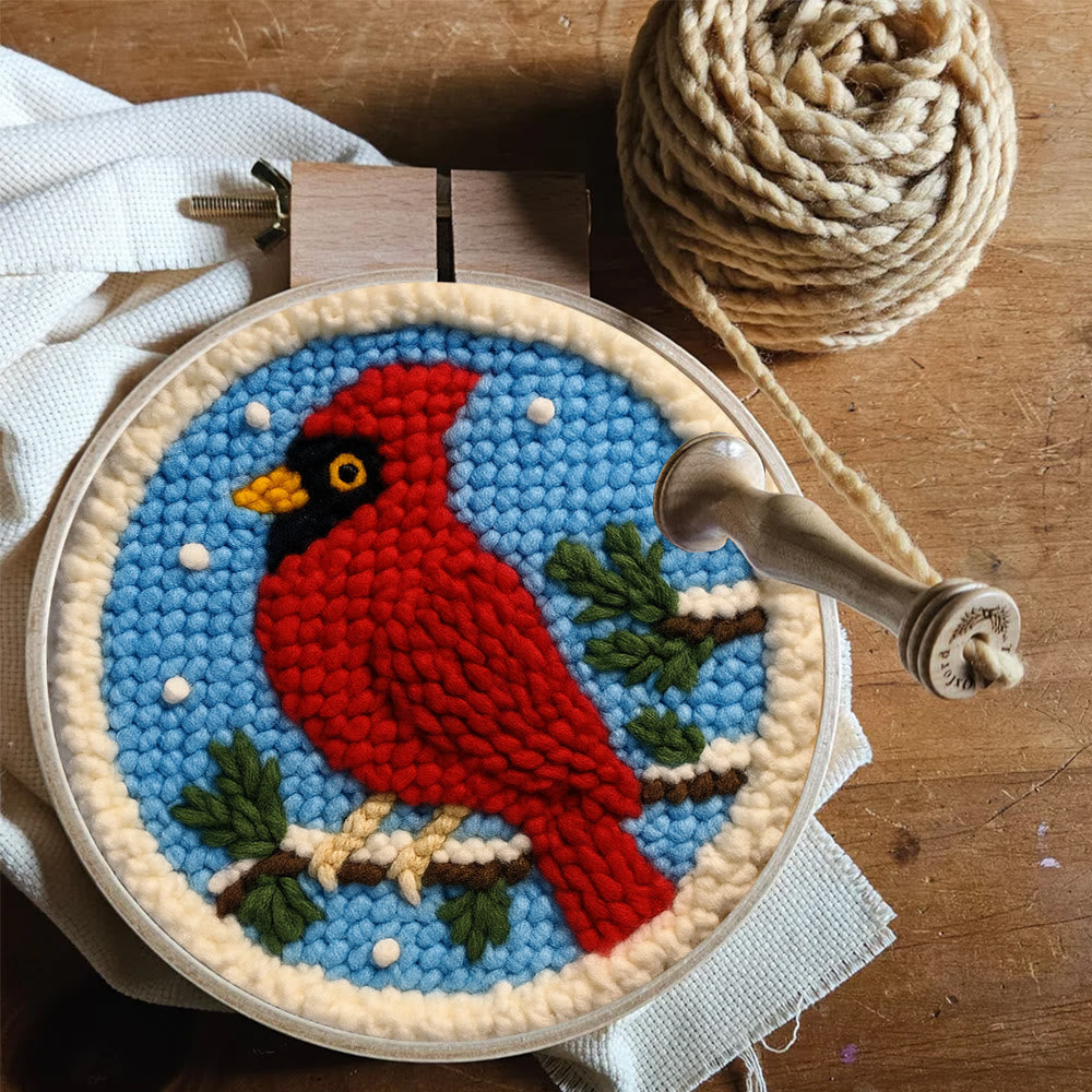 Winter Cardinal Punch Needle Kit – Beginner-easy Handcraft | Cozy Winter Wall Piece