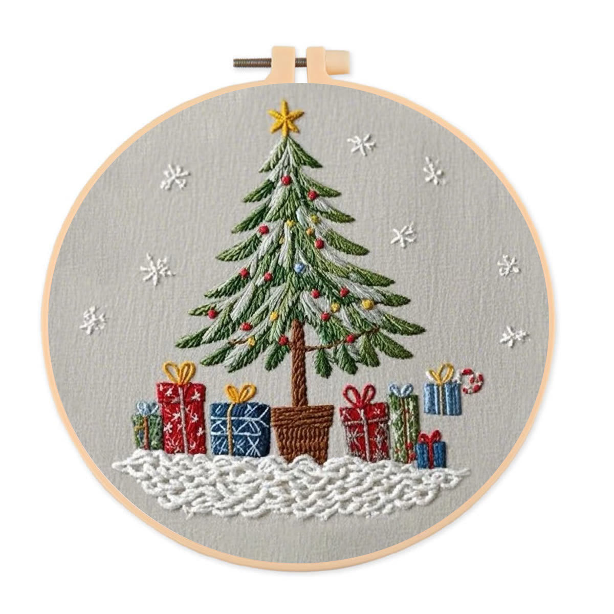 Rubbyoo Embroidery Kit- Christmas Tree With Gifts | Holiday Needlework Gift Starter Kit