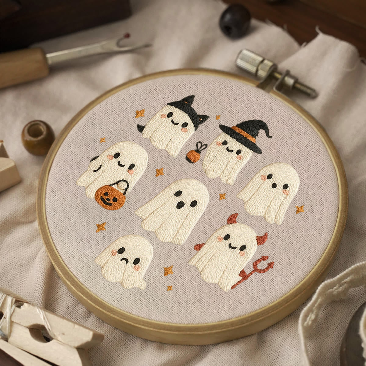 Rubbyoo Embroidery Kit - Halloween Ghost | Diy Holiday Artwork