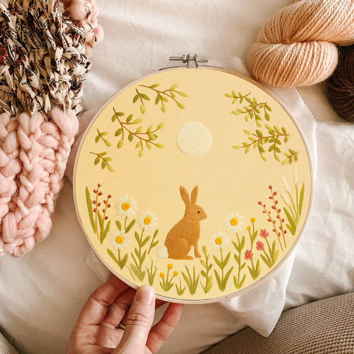 Rubbyoo Embroidery Kit - Rabbit In The Moonlight | Animal Needle Craft