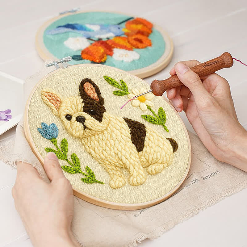 French Bulldog Punch Needle Kit - Yarn Craft | Handmade At Home | Wall Decoration-craft