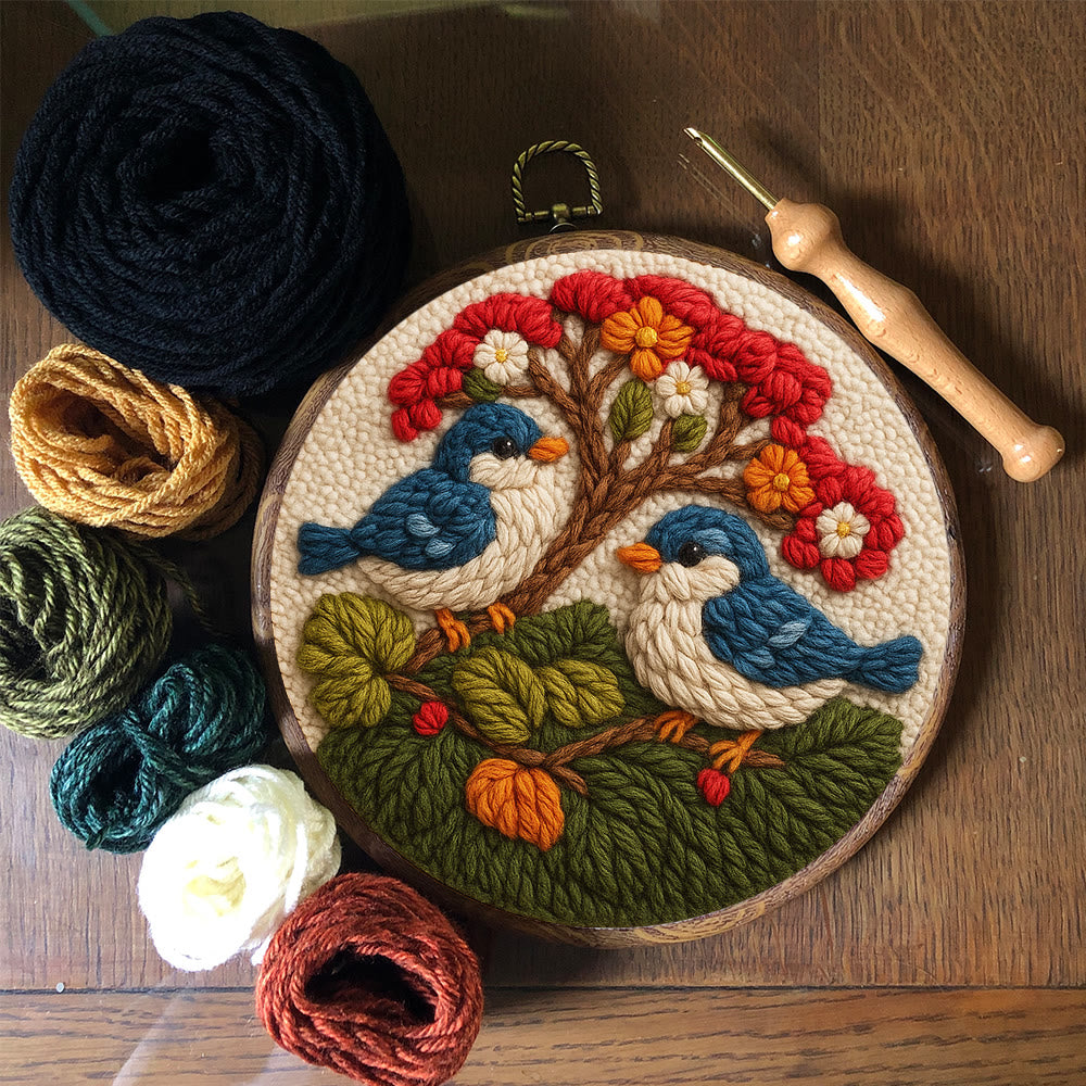 Stunning Birds Punch Needle Kit - Diy Punch Needle Coaster | Bird Needle Artwork | Beginner Handmade Craft