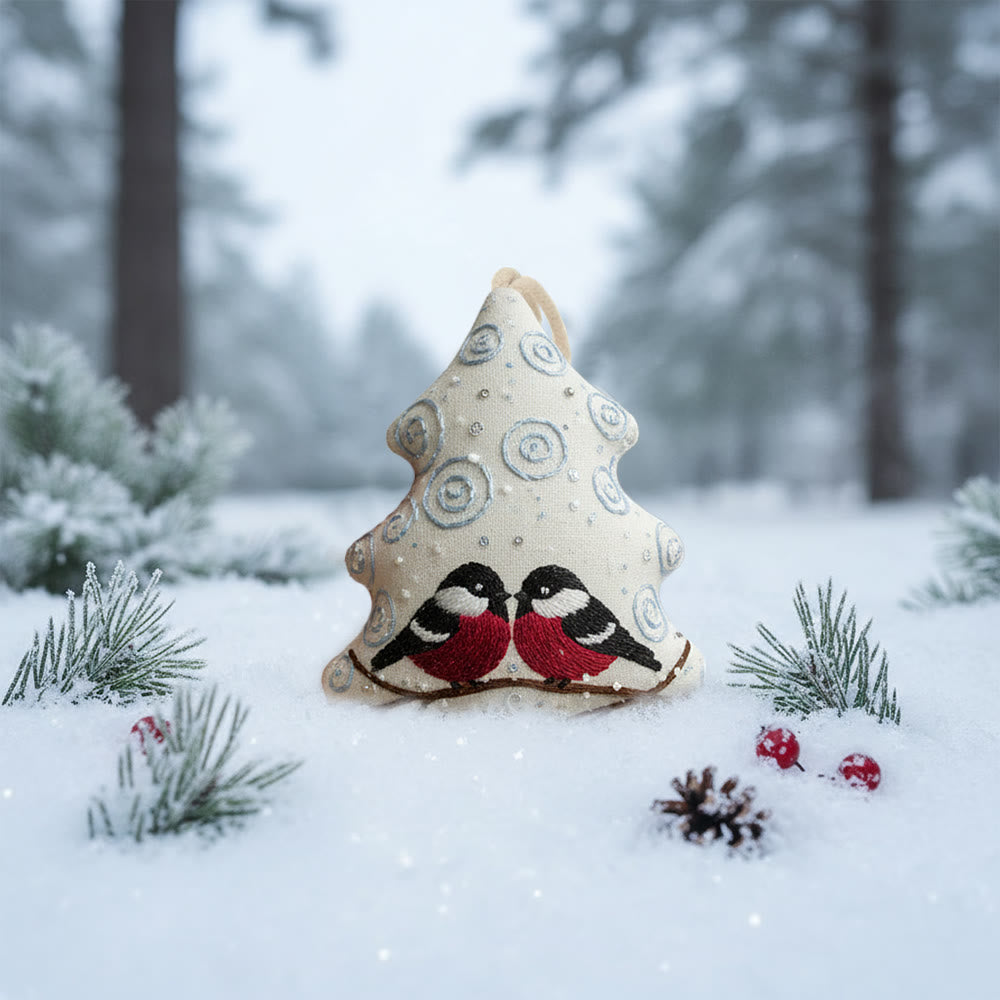 Rubbyoo Tree-shaped Embroidery Kit - Twin Birds With Swirl Detail | Approachable Embroidery Assortment | Festive Tree Accent
