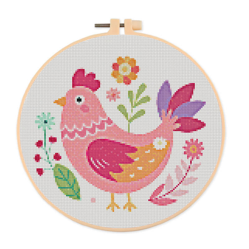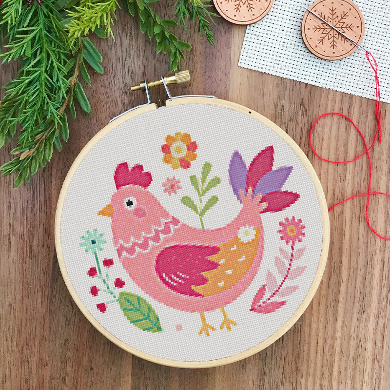Cross Stitch Kit - Floral Hen | Cosy Sewing Artwork | Wall Hanging Craft