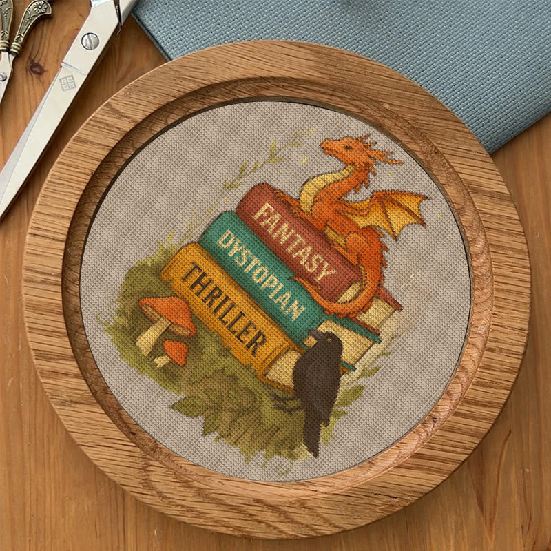 Cross Stitch Kit - Whimsical Dragon With Book | Fantasy Needlepoint | Nice Room Decor
