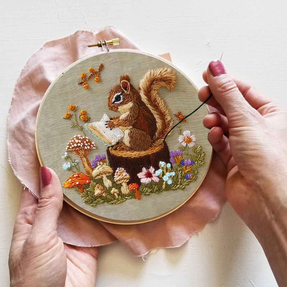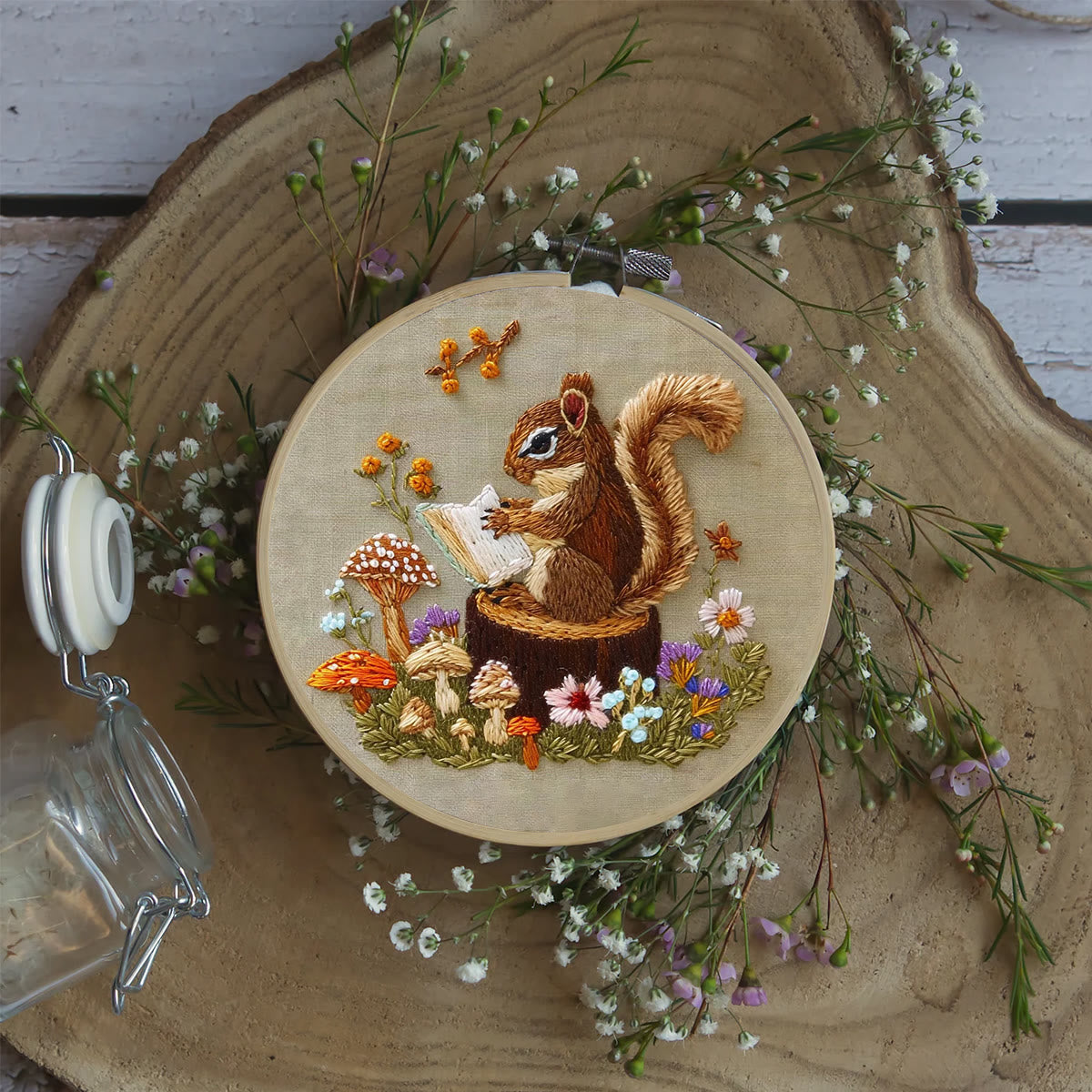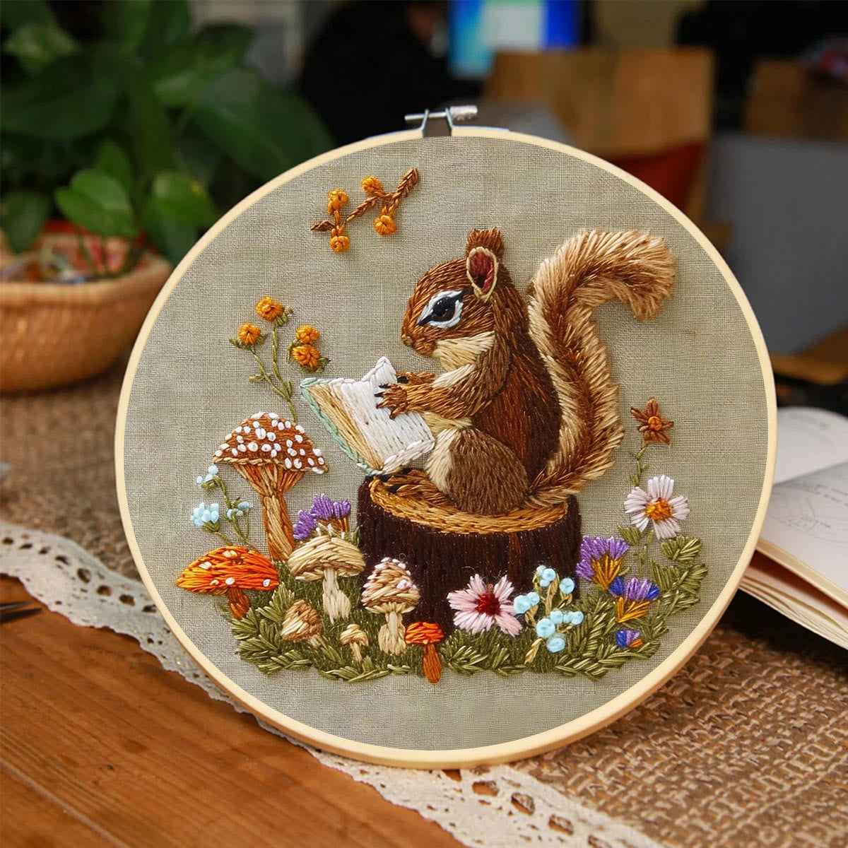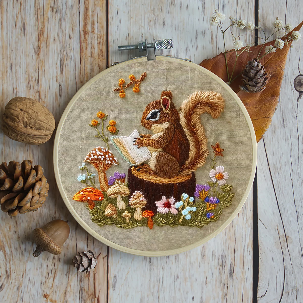 Rubbyoo Embroidery Kit - Big Reading Squirrel