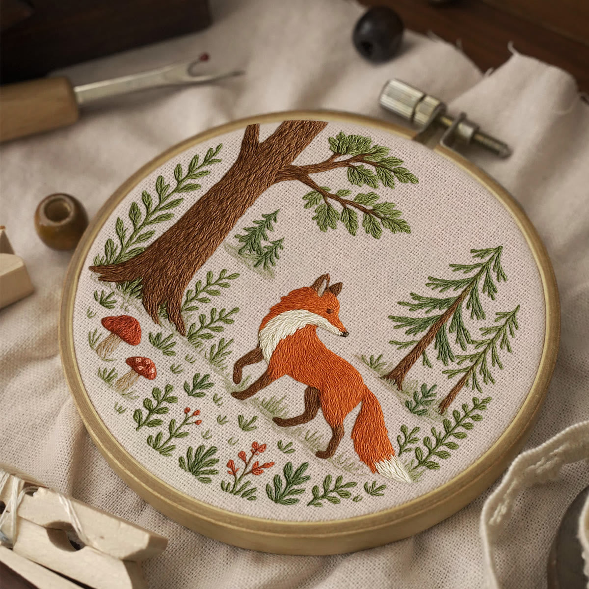 Rubbyoo Embroidery Kit - Woodland Fox | Handmade Animal Craft