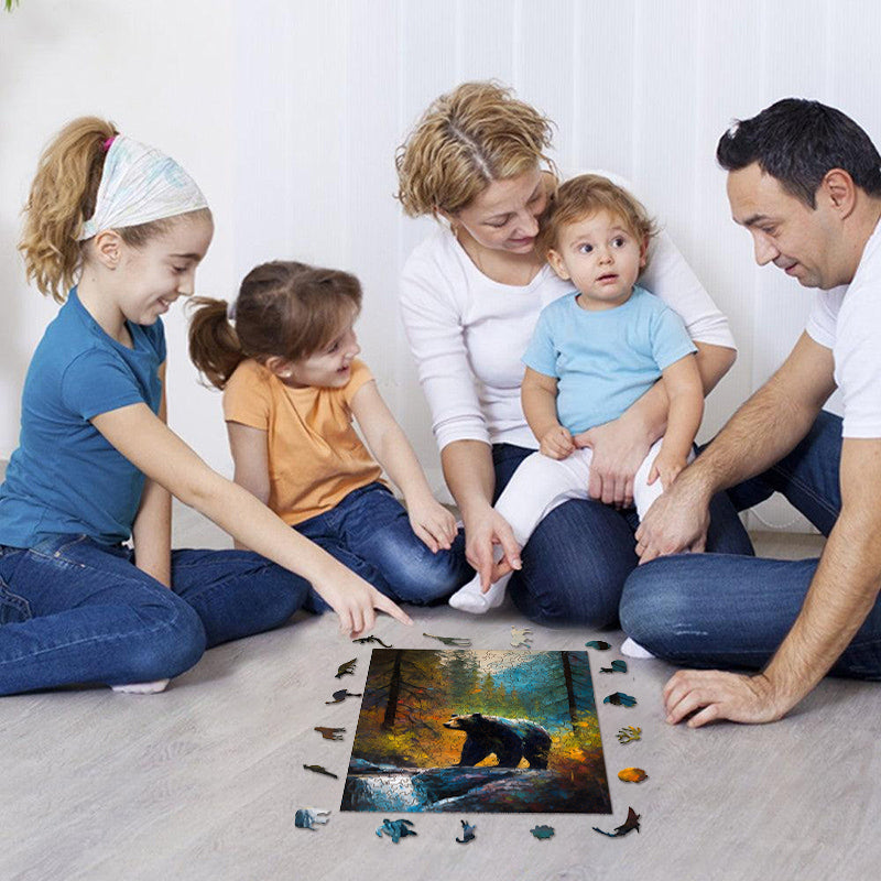 Rubbyoo Bear on the Rock by Yosemite Creek - Wooden Jigsaw Puzzle