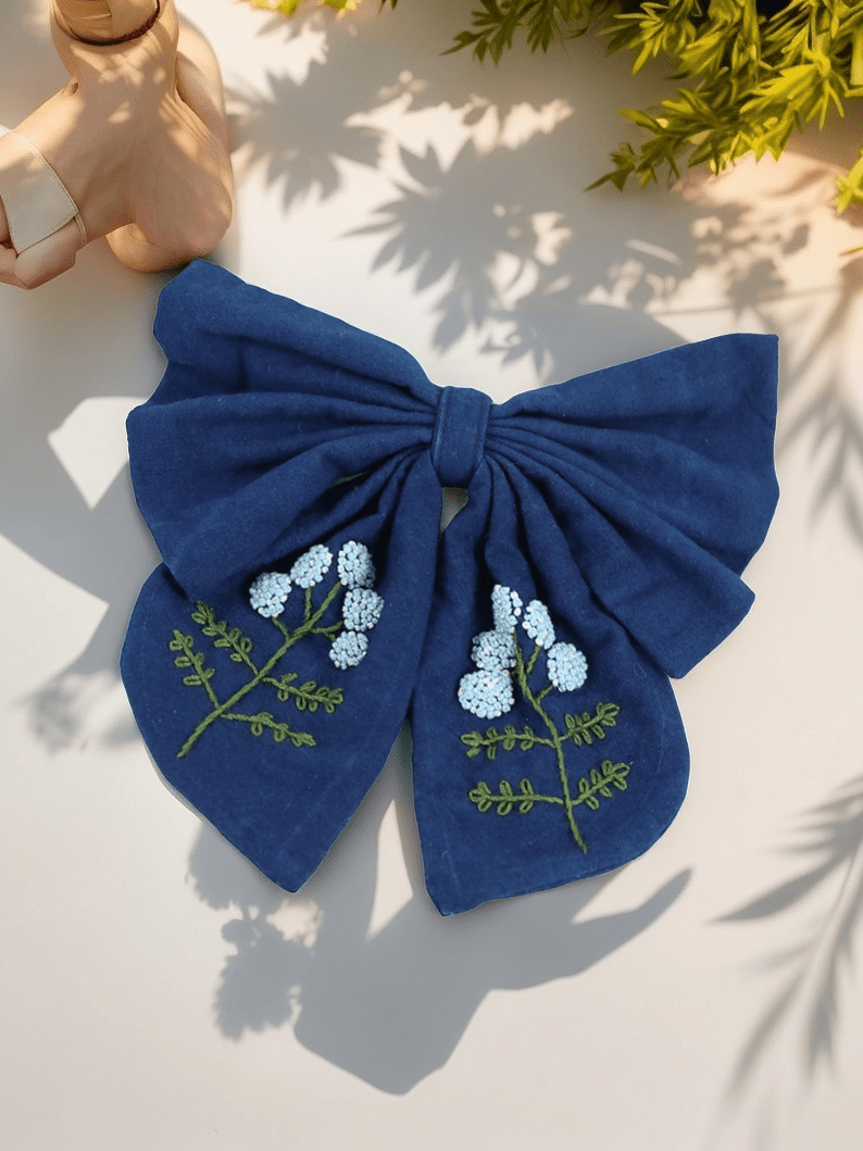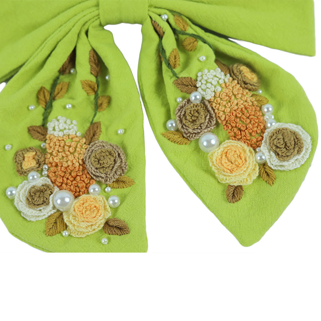 - The bow hairpin is made from soft, premium fabric.The embroidery is exquisitely done and the unique design combines traditional techniques with a modern twist.