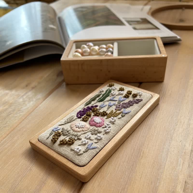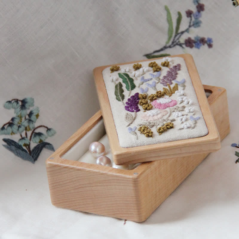 Embroidered DIY beech wood jewelry box*1box size: 13*7*4cm