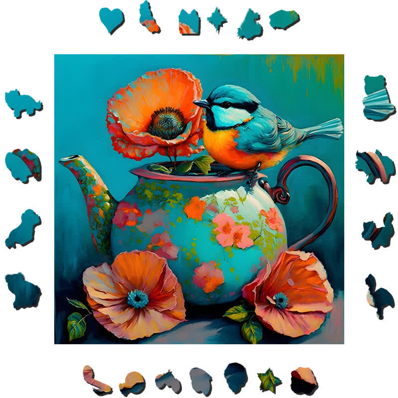 Blue Bird's Tea break dessert party - Wooden Jigsaw Puzzle