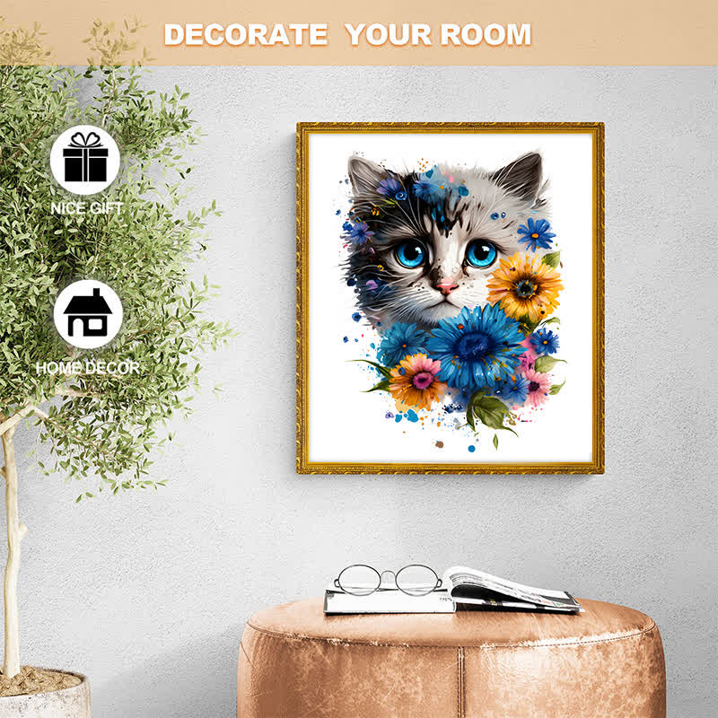 Cute adorable cat with floral vibes -1 Wooden Jigsaw Puzzle