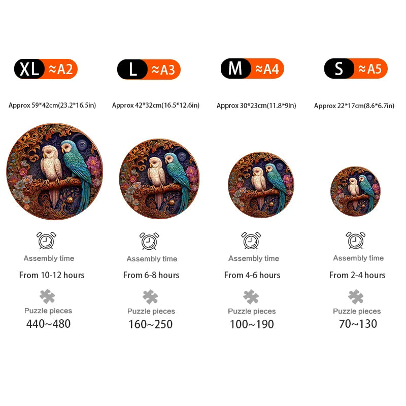 Lovebird Wood Carving - Wooden Jigsaw Puzzles - A5 / Paper Gift Packaging is backordered and will ship as soon as it is back in stock.
