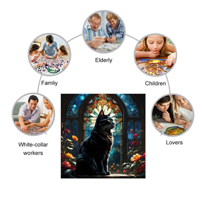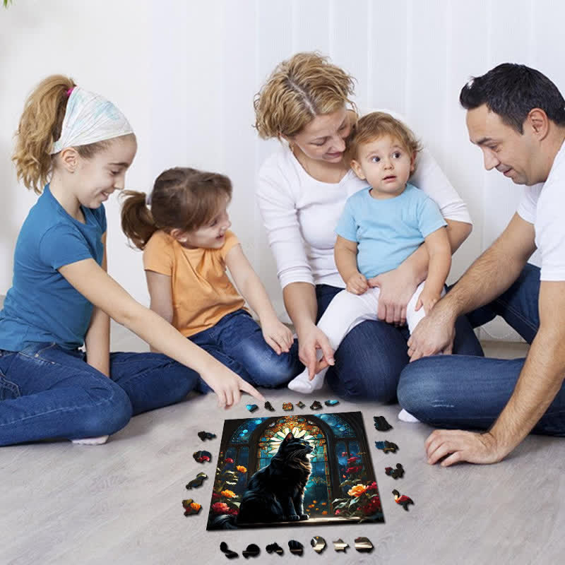 Black Cat With Glass - Wooden Jigsaw Puzzle