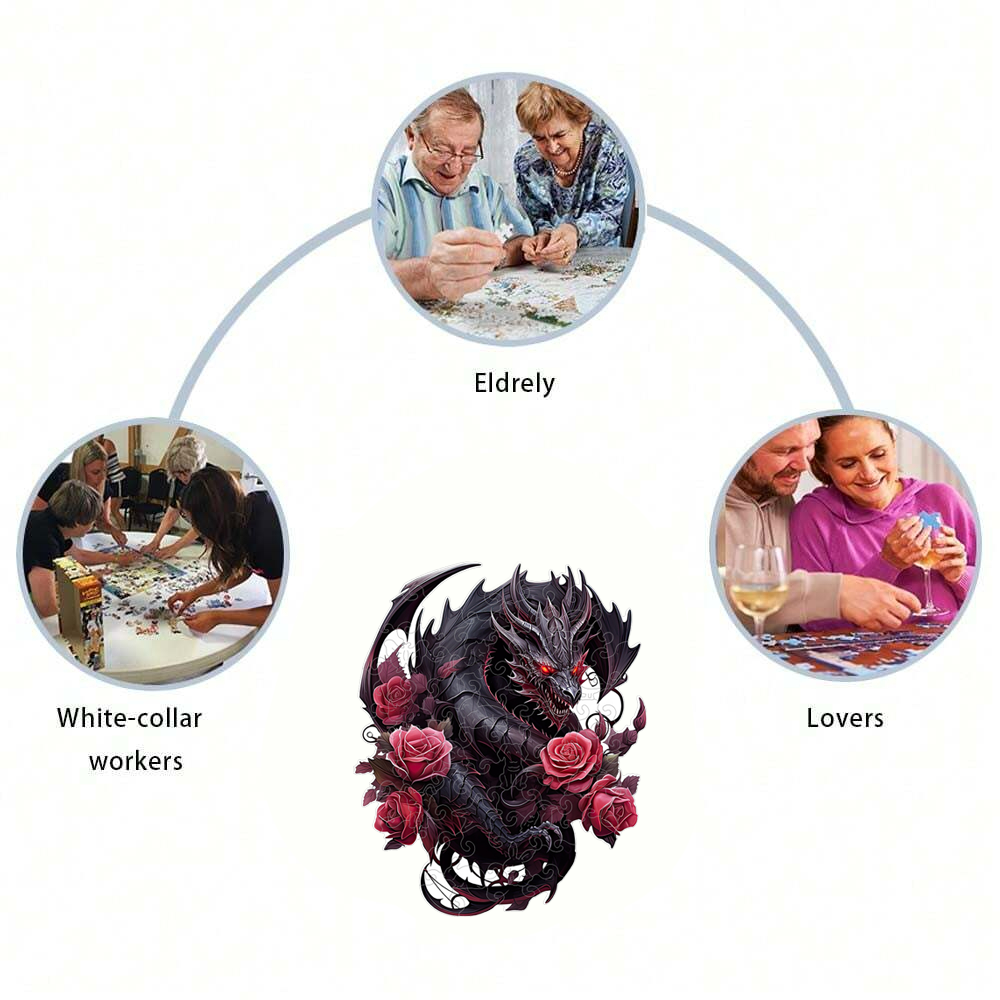 Black Dragon And Roses - Wooden Jigsaw Puzzle - A5 is backordered and will ship as soon as it is back in stock.