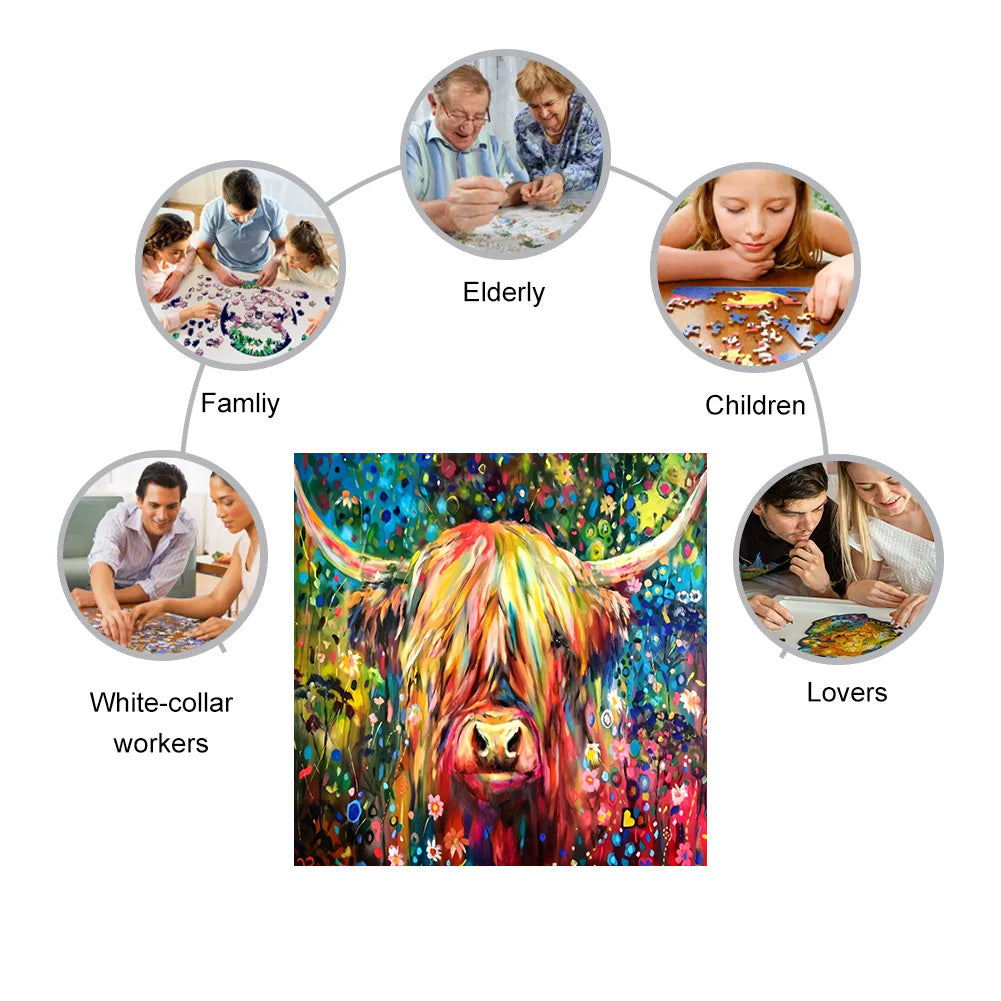 Colorful Highland Cow - Wooden Jigsaw Puzzle - A5 / Carton Packaging is backordered and will ship as soon as it is back in stock.