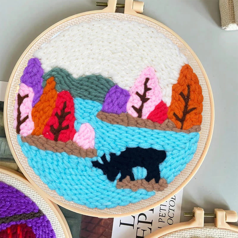 Colourful Lakeside Punch Needle Kit - Diy Handmade Collection | Basic Needle Craft
