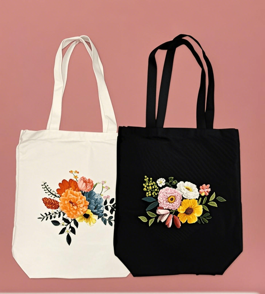 Embroidery Black And White Canvas Bag Kits | Diy Floral Crafts | Handmake Gift For Friends