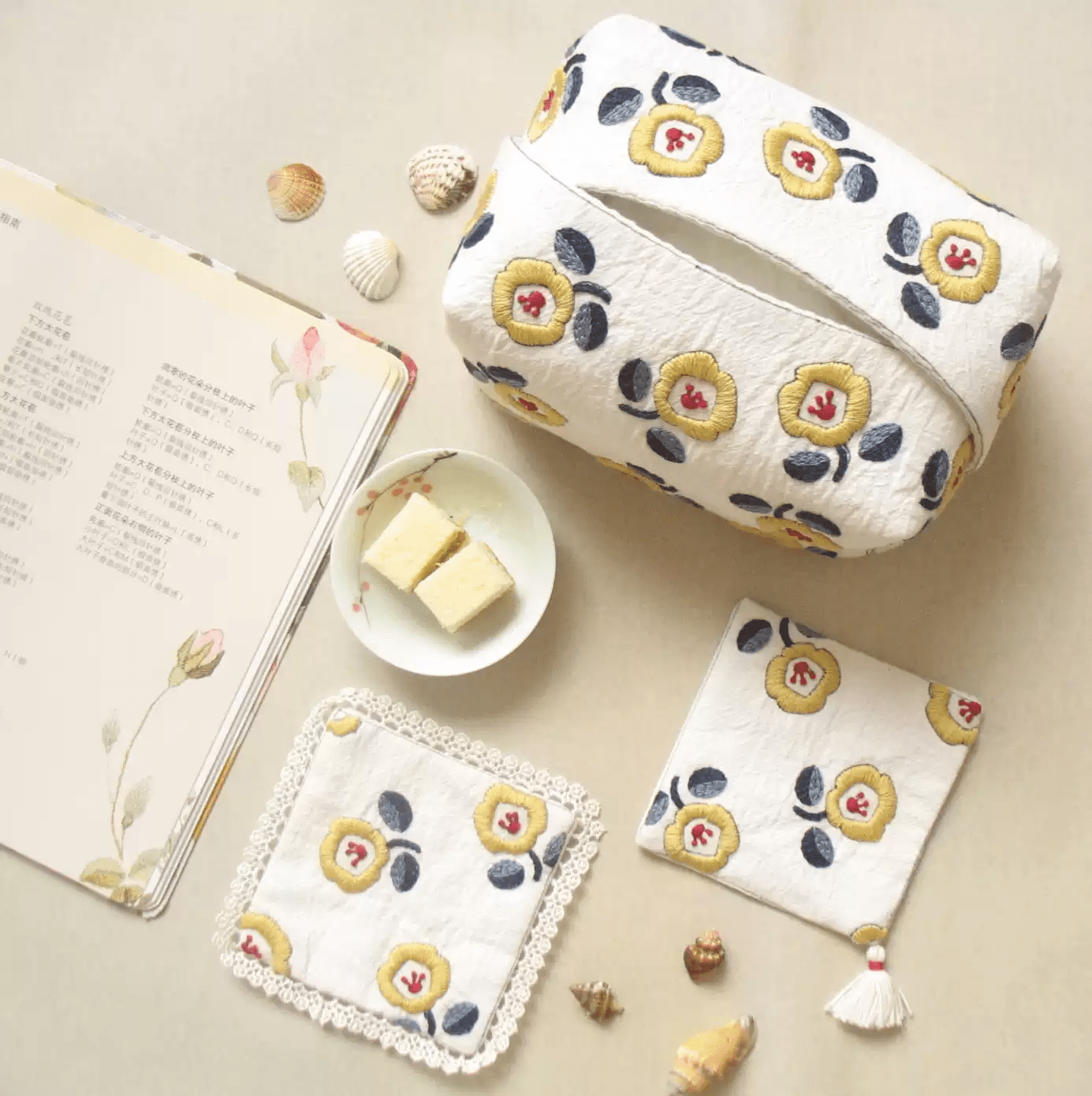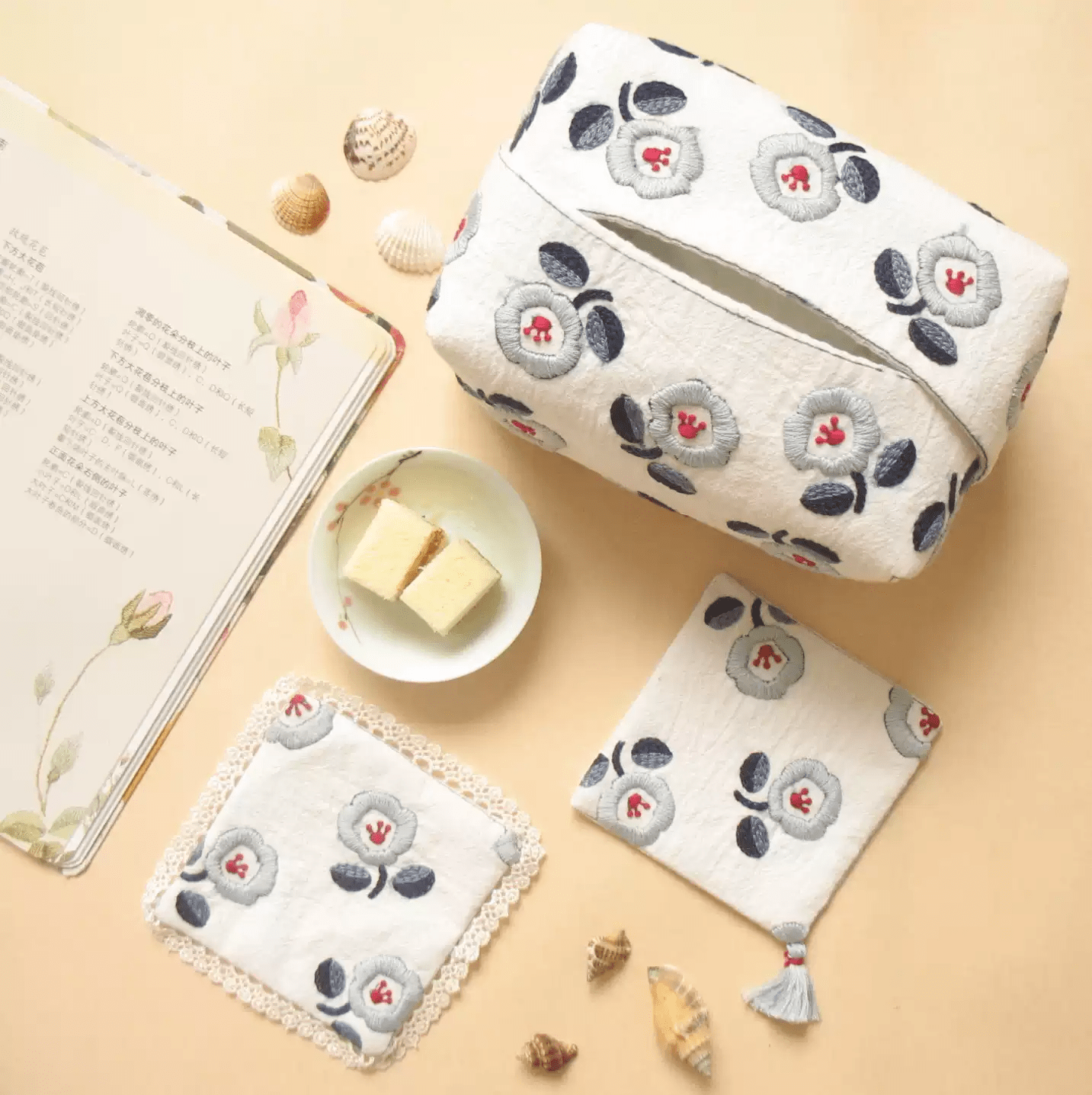 🎀This embroidery kits includes three choices like coaster material kits, tissue cover material kits, and  coasters and tissue cover combination material kits.