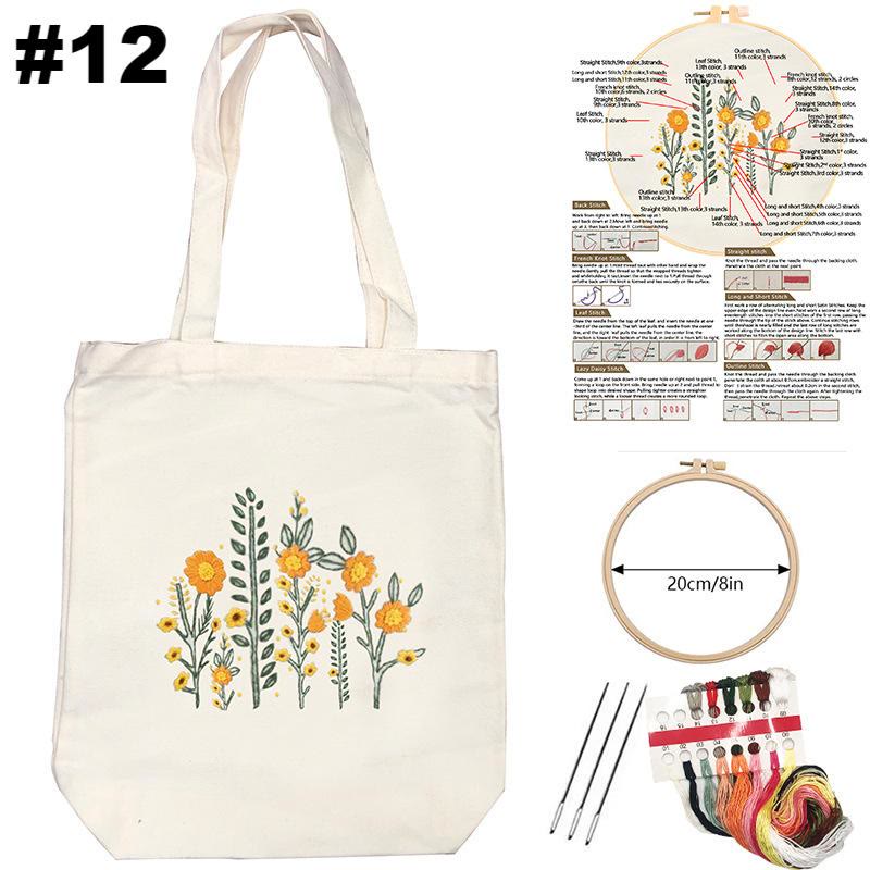 Embroidery White Canvas Bag Kits | Aesthetic Flower Design Bag | Nice Gifts For Her