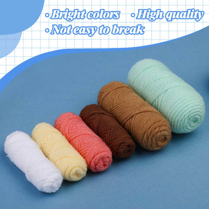 colorful yarns, professional crochet hooks, plastic eye pins, needles, various crochet craft accessories(plastic eyes, fiber filling, needle thread, fabric, etc.),English paper illustrated instructions, basic video tutoria
