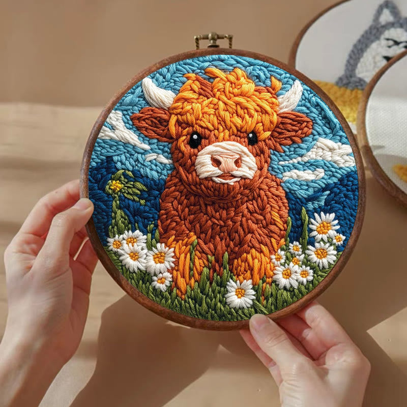 Highland Cattle Punch Needle Kit - Daisy Flower Craft | Easy Starter Set