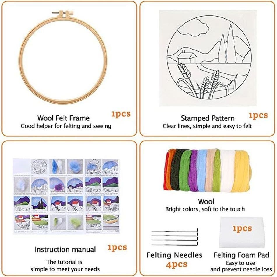 ✅ Simply fill in the printed fabric picture with wool, similar to working with an embroidery or cross-stitch pattern. This is the felting equivalent of paint-by-number.