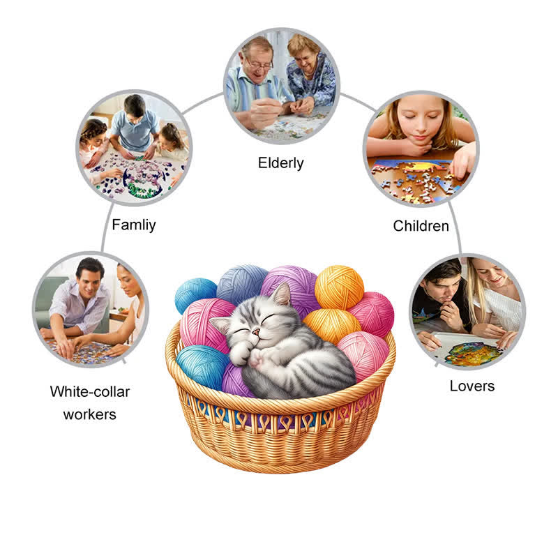 Kittens in Basket 3 - Wooden Jigsaw Puzzle