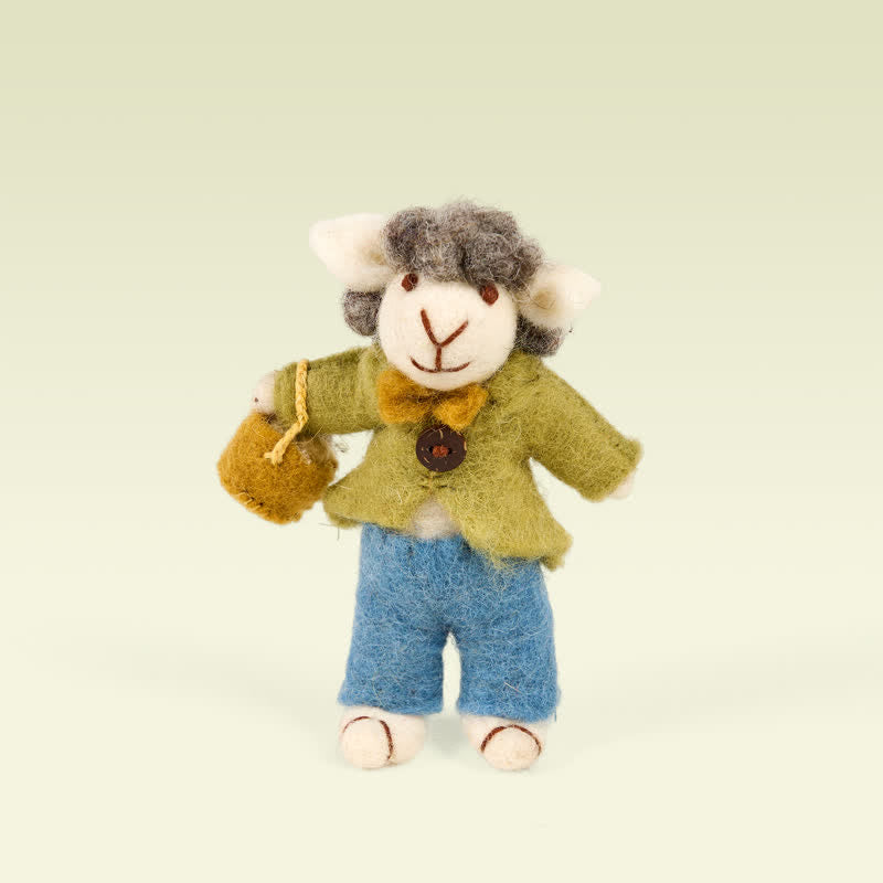 A sheep ornament with a basket full of eggs: He is wearing a bow tie and a green jacket, and his fluffy head is very cute! The gentle color will brighten up the atmosphere of the room.