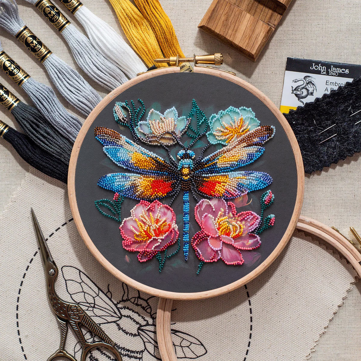 Rubbyoo Bead Embroidery Kit - Floral Dragonfly | Colourful Insect Handicraft | Diy Home Decoration