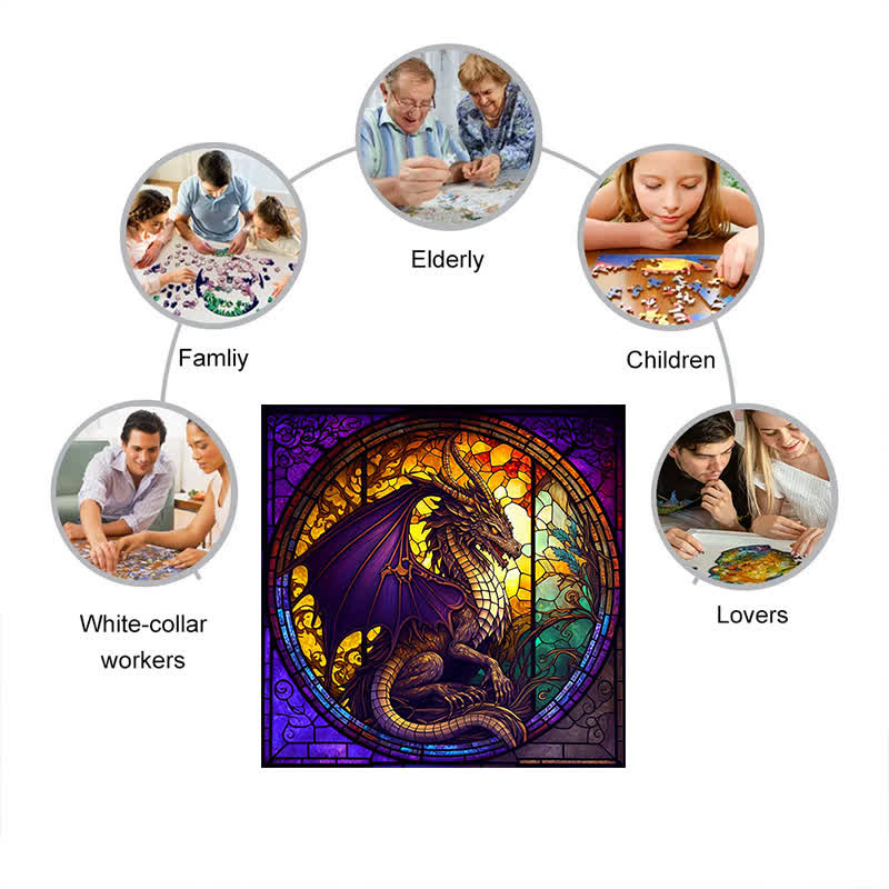 Rubbyoo Dragon Stained -4 Wooden Jigsaw Puzzle