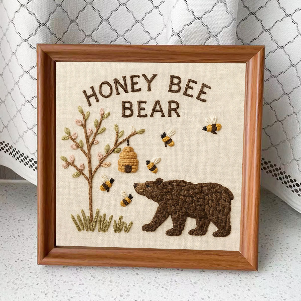 Rubbyoo Embroidery Kit - Bee And Bear | Cute Animal Craft