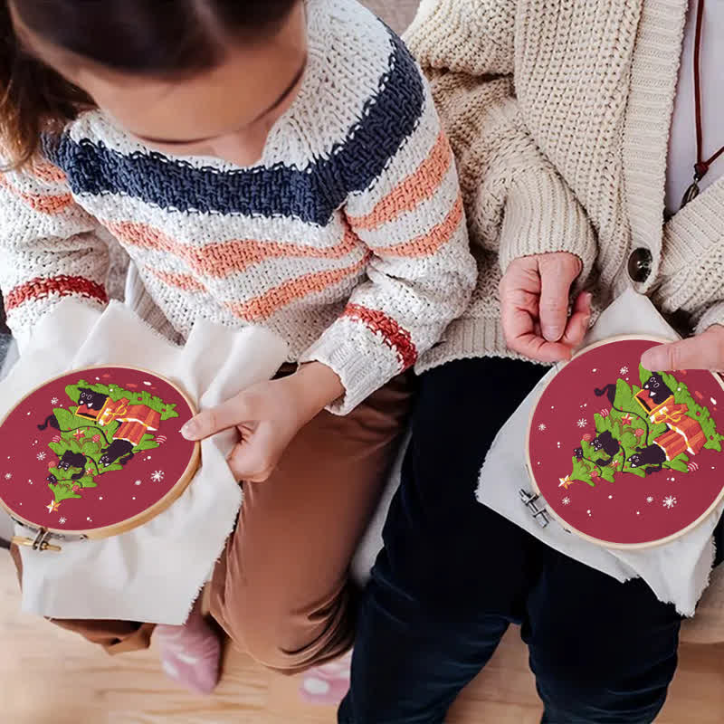 Rubbyoo Embroidery Kit - Black Cat Christmas Kittens