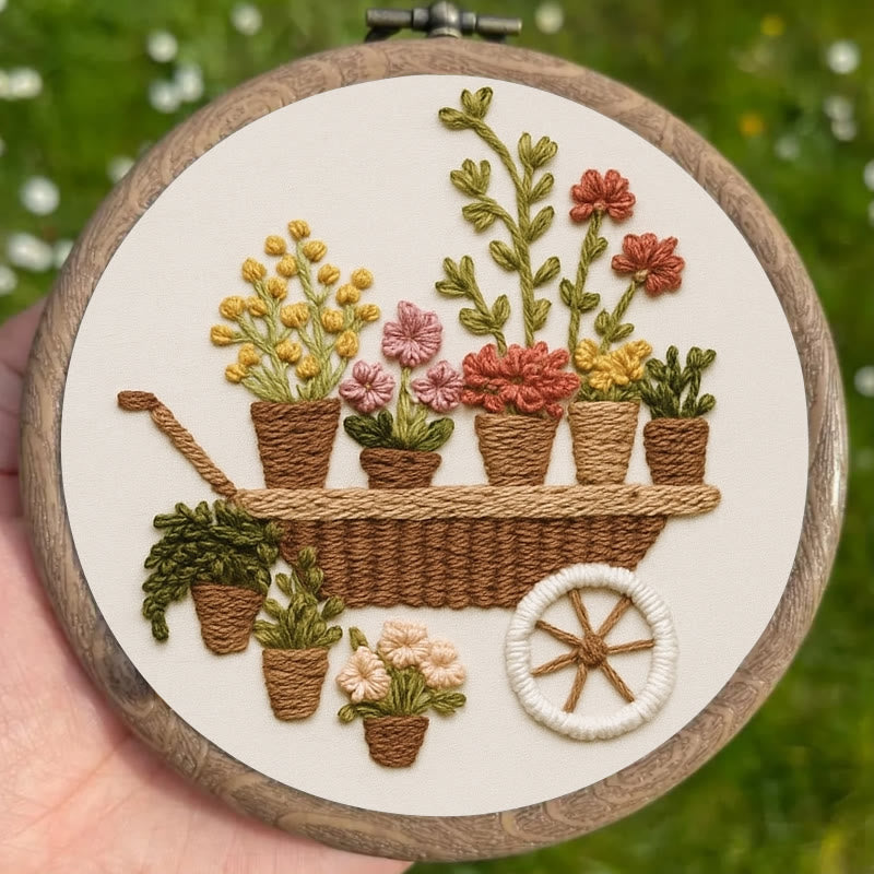 Rubbyoo Embroidery Kit - Blooming Flower Cart | Beginner-friendly Handicraft | Nice For Gifts