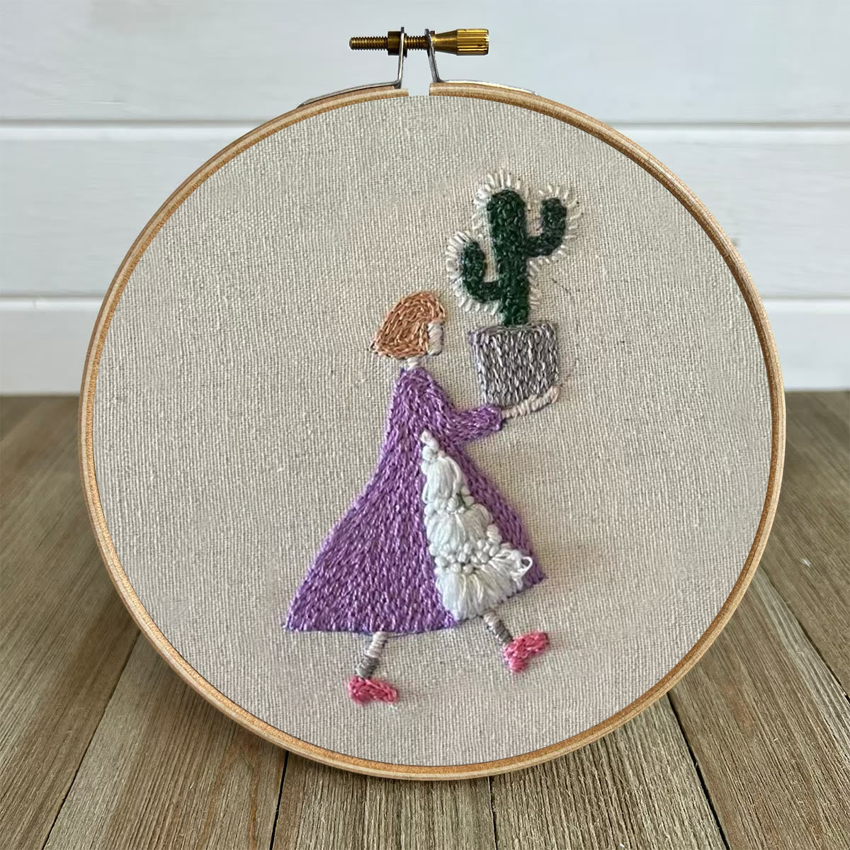 Rubbyoo Embroidery Kit-Cactus Girl | Cozy Crafts Diy Kit For Women