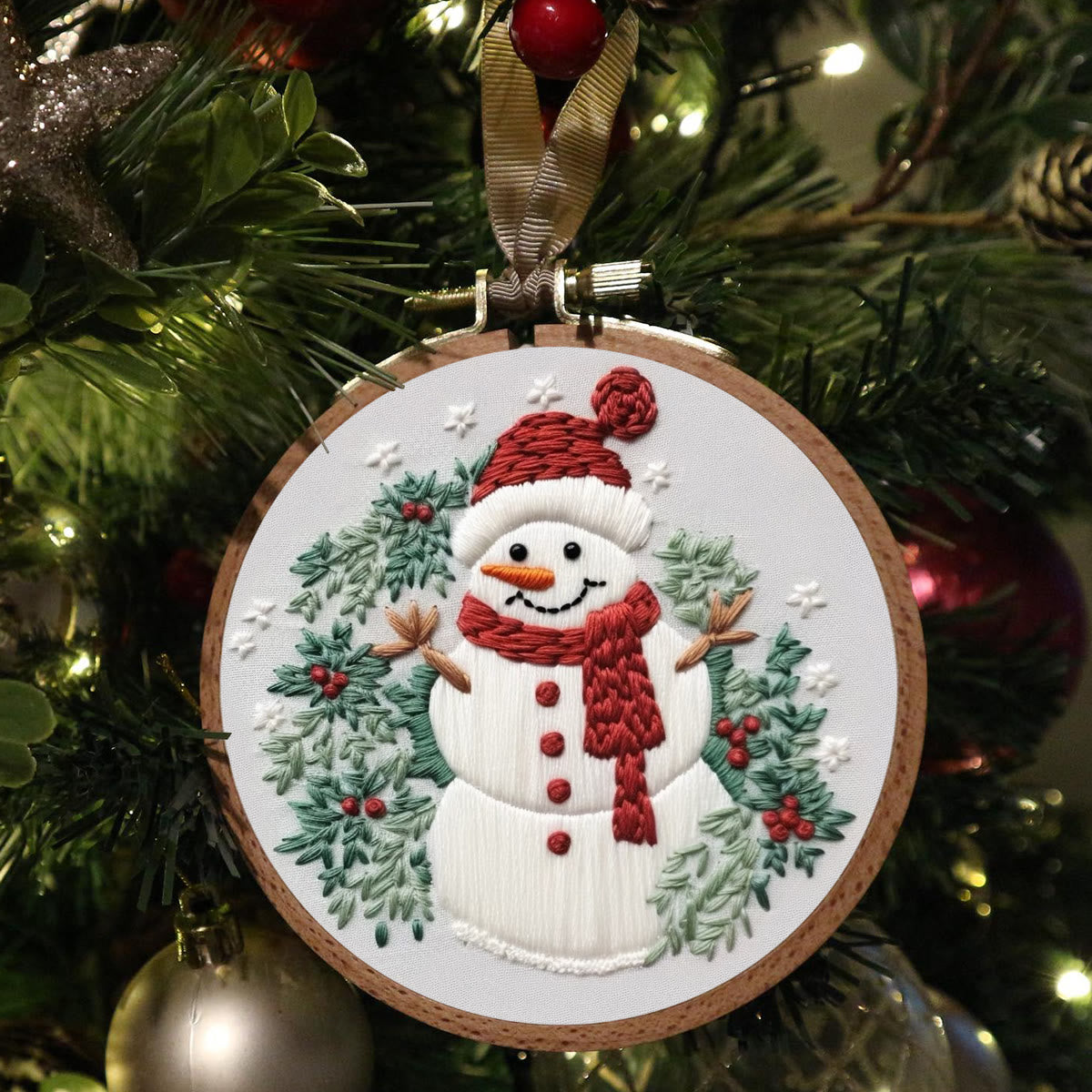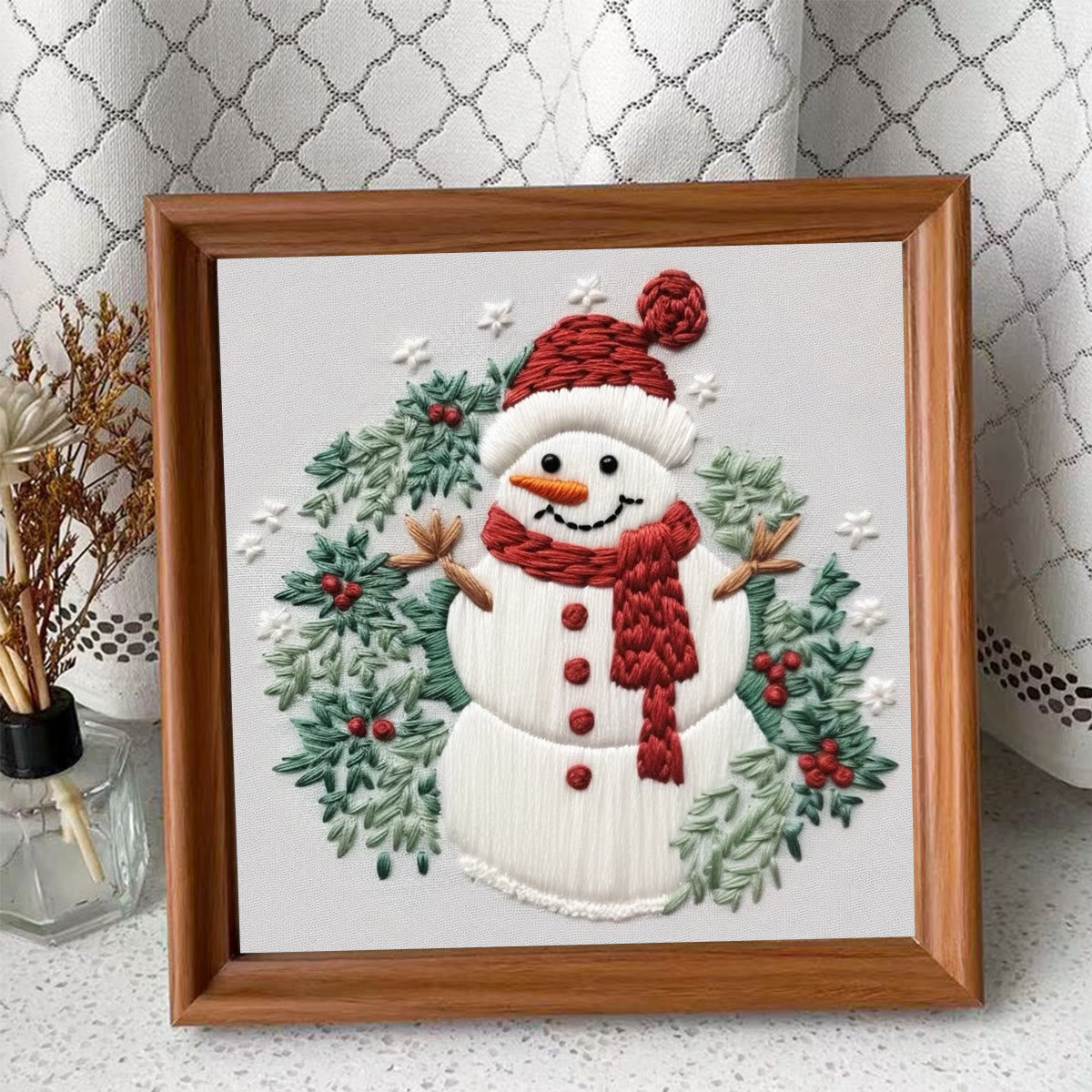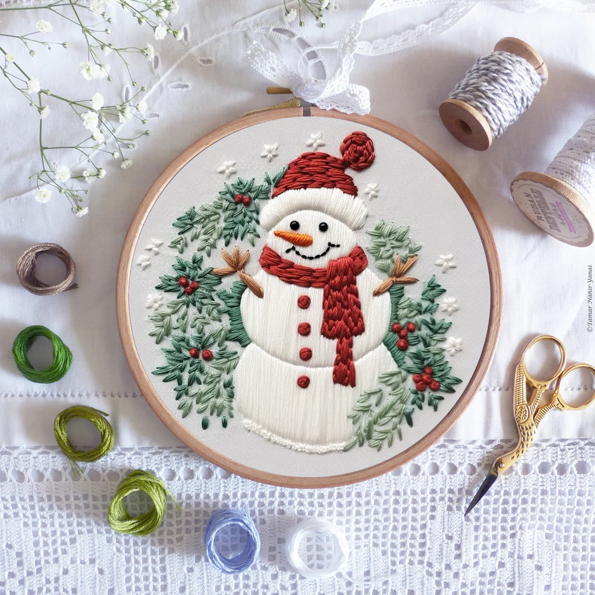 Rubbyoo Embroidery Kit - Cute Snowman | Winter Needle Craft | Handmade Holiday Gift