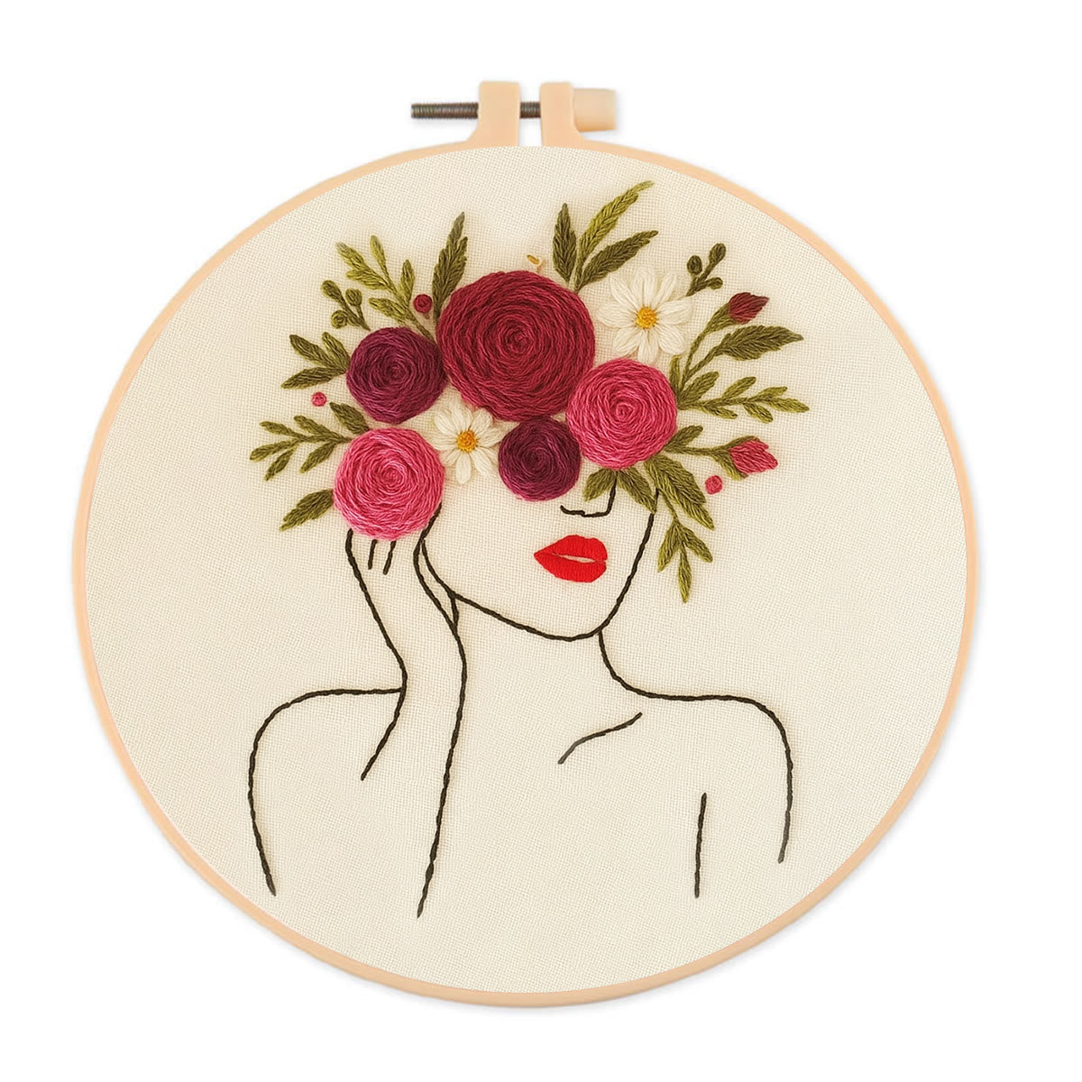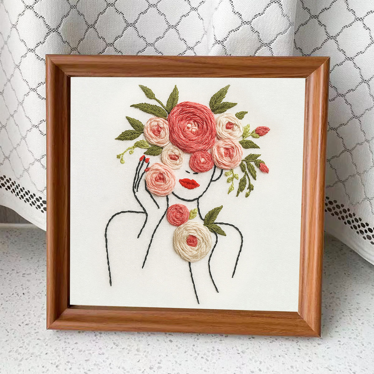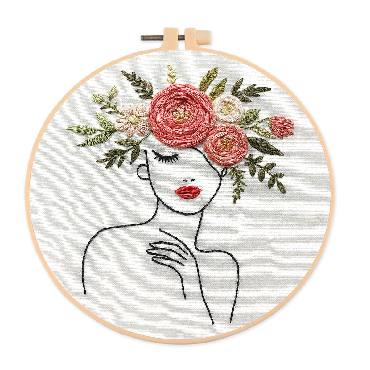 Rubbyoo Embroidery Kit - Floral Female Series | Diy Stitching Gift | Perfect For Home Decor