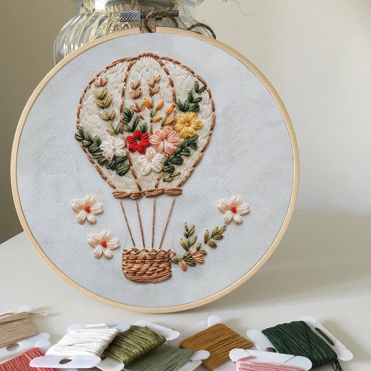 Rubbyoo Embroidery Kit-Floral Hot Air Balloon Easy Embroidery Kit For Beginners | Autumn Crafts