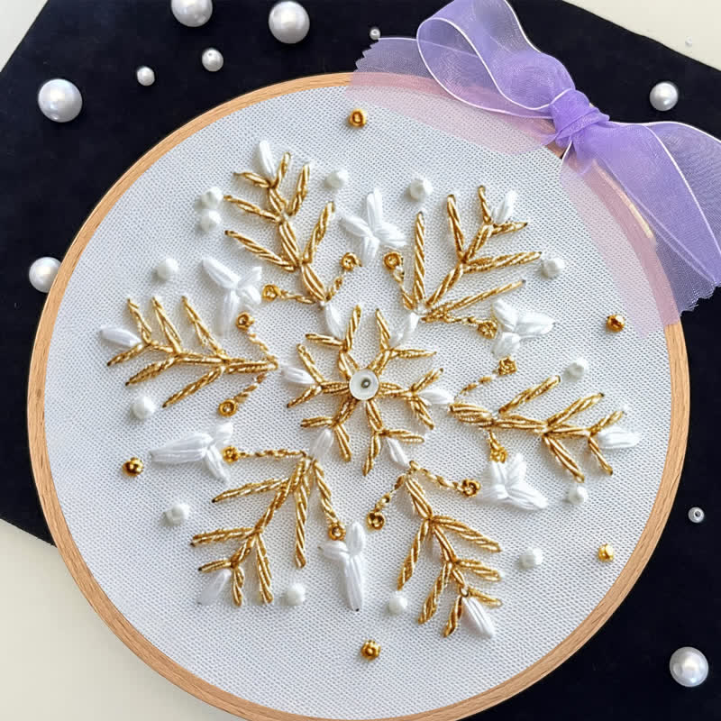 Rubbyoo Embroidery Kit - Gold and White Snowflake2