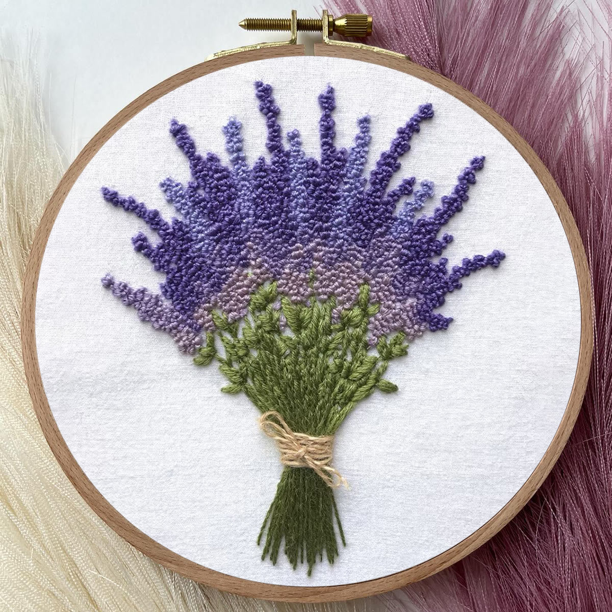 Rubbyoo Embroidery Kit - Lavender Flower | Floral Needle Craft Gifts
