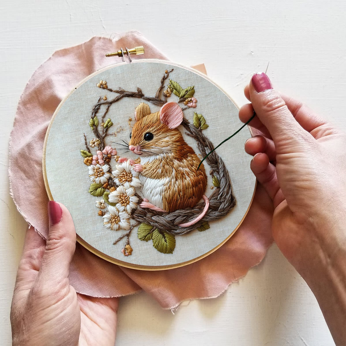 Rubbyoo Embroidery Kit- Little Mouse Diy Craft Kits | For Craft Lover