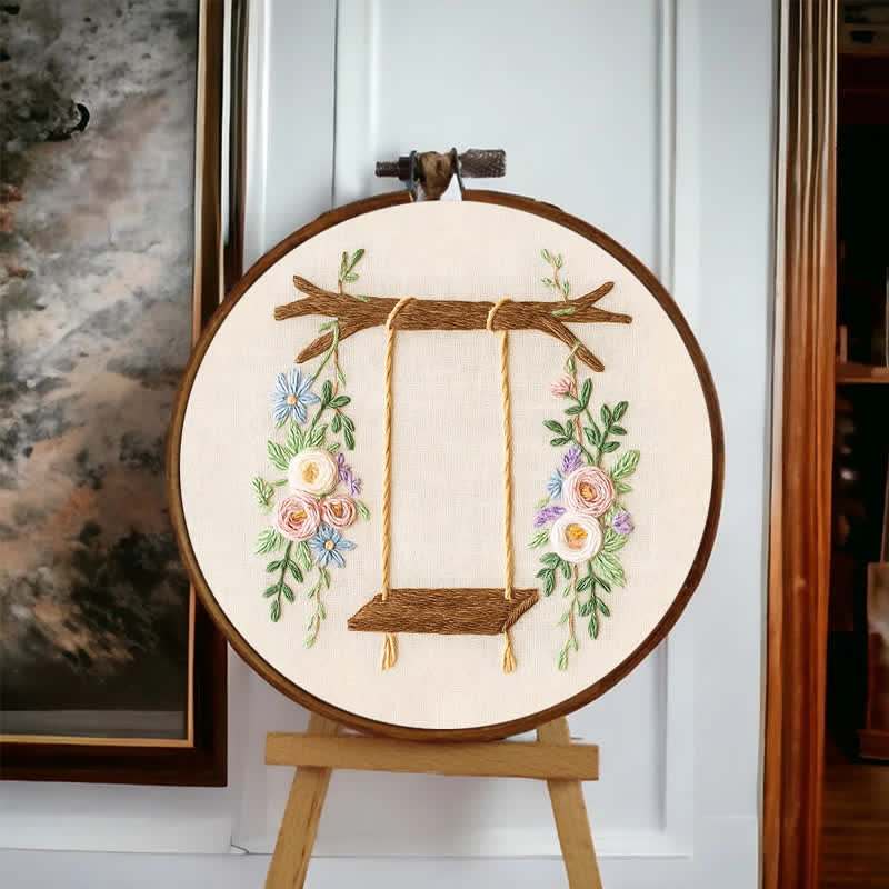 Rubbyoo Embroidery Kit -Rose Flower Swing | Make Your Own | Craft Kit | Gift For Her