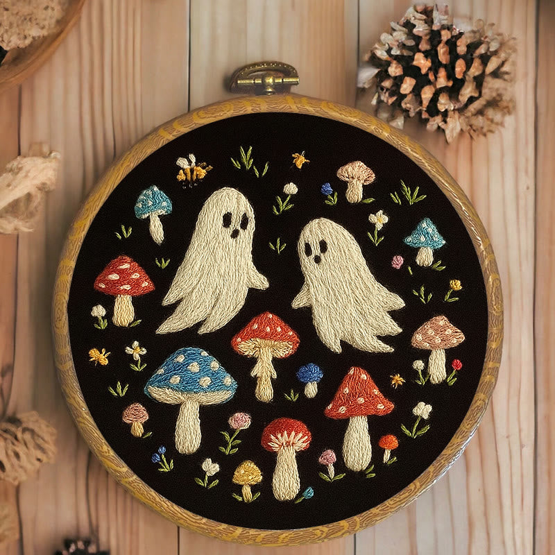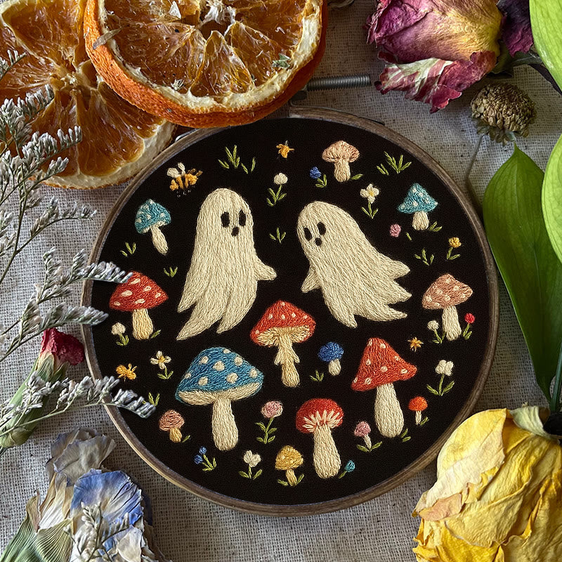 Rubbyoo Embroidery Kit - Spooky Ghosts With Mushroom | Handmade Holiday Collection | Halloween Home Decor