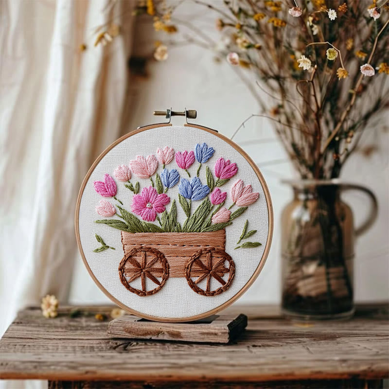 Rubbyoo Embroidery Kit -Spring Cart | For Craft Lover Cozy Crafts