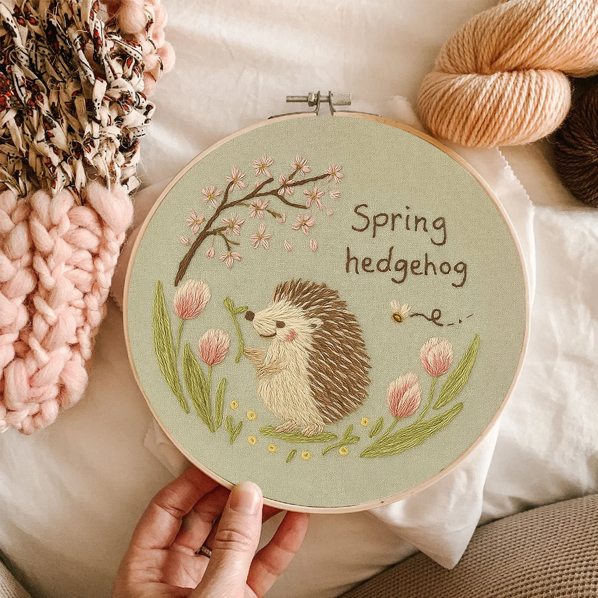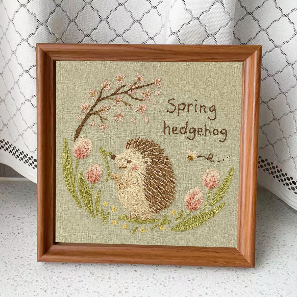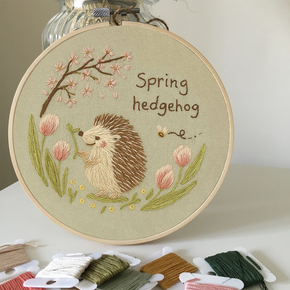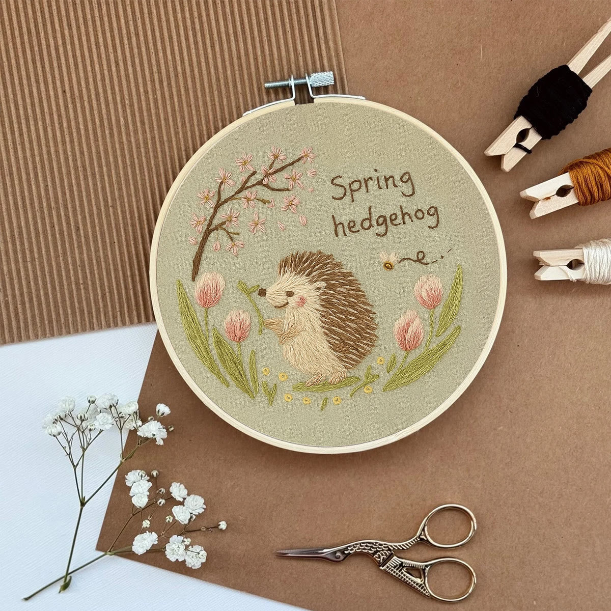 Rubbyoo Embroidery Kit - Spring Hedgehog | Diy Forest Animal Artwork